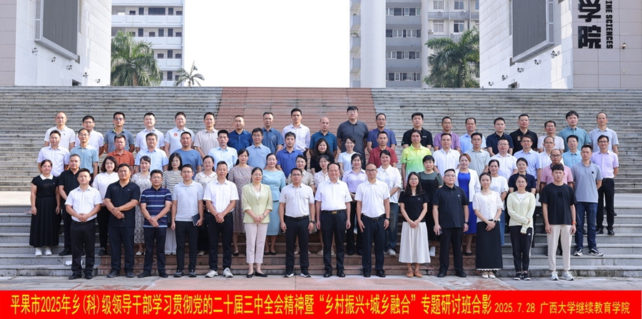7月28日,平果市2025年乡(科)级领导干部学习贯彻党的二十届三中全会精神暨“乡村振兴+城乡融合”专题研讨班在我校开班。中共平果市委组织部副部长、市老干部局局长(兼)阮俊杰,开云网页版登录入口干部培训中心主任黎耀凡出席开班式并讲话。