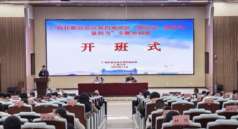 11月5日,广西壮族自治区第四地质队“铸信念、强作风、显担当”专题培训班在我校开班,广西壮族自治区第四地质队党委书记韦业东出席开班式并作动员讲话,开云网页版登录入口院长闭富春出席开班式并致辞。